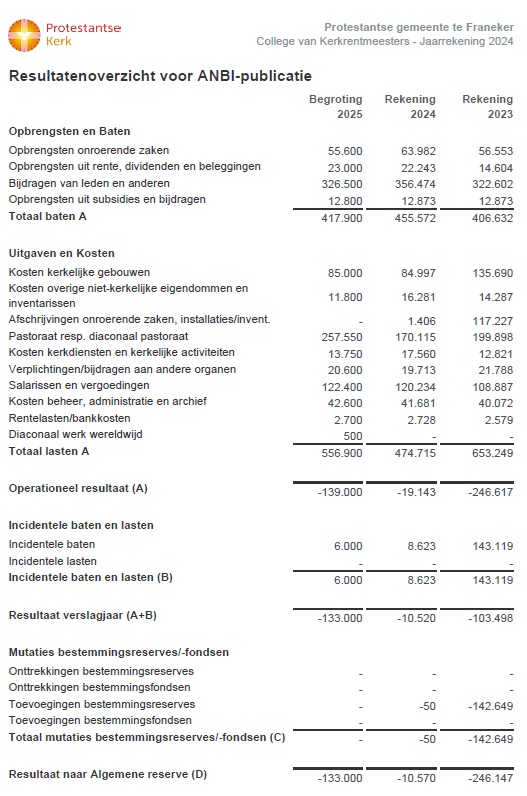 ANBI publicatie van de Protestantse Gemeente te Franeker.